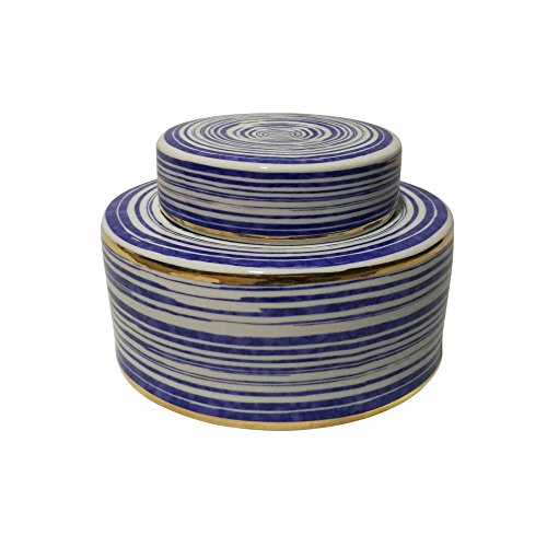 Benzara Fascinating Ceramic Covered Jar, Blue/White