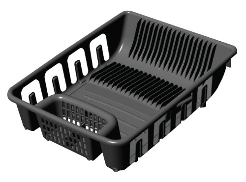 United Solutions SK0110 Black All in One Standard Plastic Sink and Kitchen Dish Rack - Self Draining Dish Rack Holds 22 Plates and 8 Glasses in Black