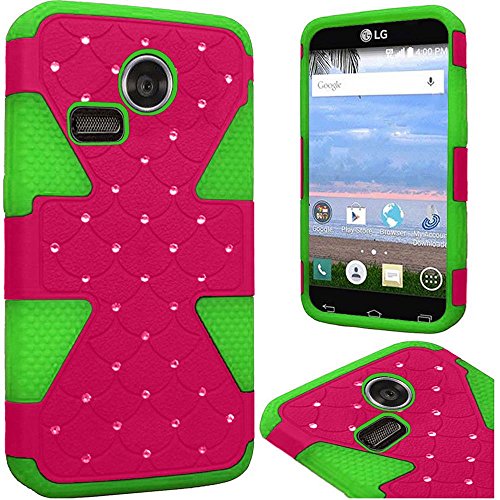 HRWIRELESS(TM) For LG L15G L16C Sunrise Lucky Dynamic Slim Rugged Hybrid Dual Layer Stud Diamond Cover Case (Black Black)
