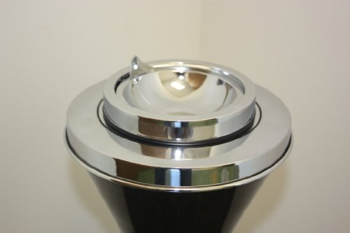 Contemporary Black Floor Stand Ashtray. This sleek, stylish floor stand ashtray is a welcome addition to any modern decor. Finished in bright polished chrome that shines like a mirror, this self cleaning ashtray keeps your home clean by disposing of all the cigarette butts and ashes with just the push of a button. Keep ugly cigarette butts out of sight. Since the butts are stored in separate hidden compartment the odor and smoldering smoke are reduced keeping the smell down to a minimum. This ashtray is perfect for next to tables on the floor or anywhere near where you are sitting. The Contemporary Chrome Self Cleaning Floor Stand Ashtray stands 2 feet tall and has a 6 1/2" foot print. A Weight on the bottom makes this unit bottom heavy for protection against falling over. Remove the ashtray portion from the floors stand to use as a regular table ashtray.