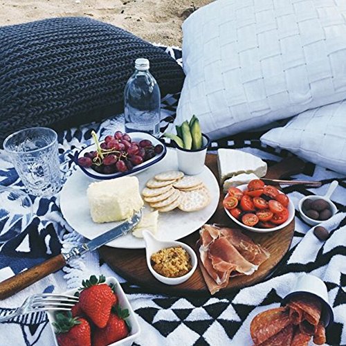 Ideal Material and Thickness: Made of 100% soft cotton material for maximum comfort, absorbency, and durability which can stand up to multiple wash and dry cycles; Weight of 420 g per square , the whole product weight over 900 g; its thickness is far more than that of the common beach towel in the market . It's a perfect beach or picnic blanket, diameter of 1.5m (60’’), big enough to accommodate two or three people.