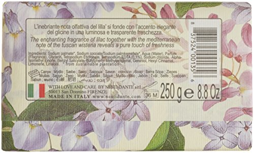 -. Feature : Scent: Tuscan Wisteria & Lilac / Natural Soap / Free From Petrochemicals, Sulphates, Synthetic Surfactants, Parabens & Glycols / 250g / Made In Italy