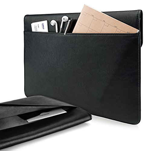 The Laptop case comes with a large rear compartment that makes carrying your valuables a no-hassle affair, one card pocket lined with PU leather in rear compartment for business card. Thanks to its substantial size, the large back pocket can accommodate a host of different accessories, including tablets, cell phones, kindles, wallets and other items.