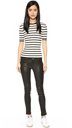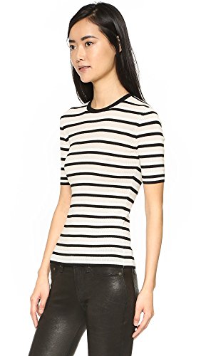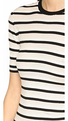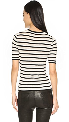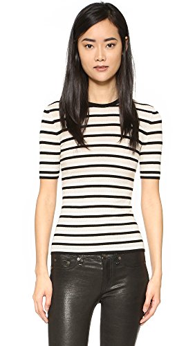 Contrast stripes accent this soft, ribbed-knit Theory sweater. Short sleeves. Semi-sheer.