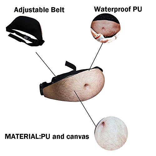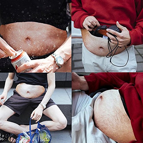 Product Description Dad beer belly waist pack makes you look like dad body without gaining weight! Suitable for gifts spoof tricky! Excellent as a funny gift for Halloween, Christmas party and any occasion Sufficient storage space: It can contain many things, such as wallet, mobile phone, keys, earphone, USB recharging cable, mp3, mp4, snacks, pens and medicines. In addition, the partition inside the pack can provide excellent protection for your mobile phone and valuables and prevent your mobile phone from screen scratches.