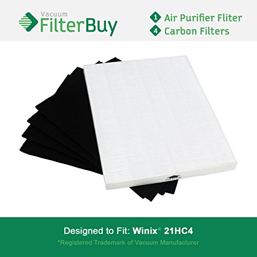 -. Feature : Pack includes 1 HEPA filter and 4 Carbon pre-filters. / Manufactured by FilterBuy to replace HEPA filter for Winix models WAC5500, WAC6300, WAC5000, P300, 9000, 5000B, 5300, 5300-2, 6300-2, and C535 / Captures 99% of harmful particles such as dust, pollen, and smoke down to 0.1 microns. / Replace HEPA filter every 3-6 months & the carbon filters 2-3 months depending on usage. / Air FilterBuy: Breathe Better!
