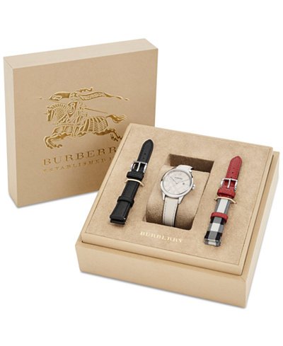 -. Title : Burberry Women's Swiss White Fabric Strap Watch & Interchangeable Straps Box Set 32mm BU10112