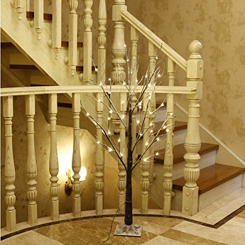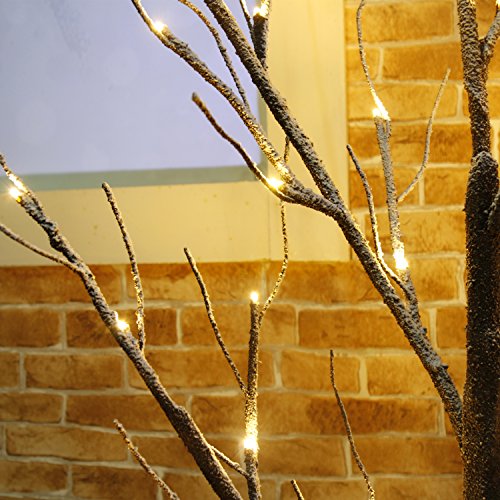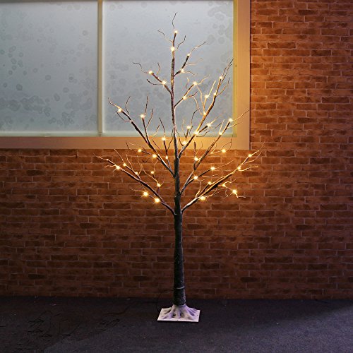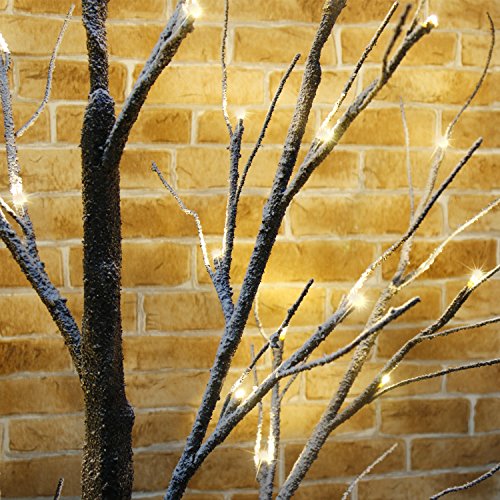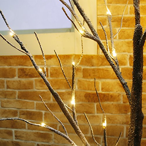 4 FT brown LED snow tree will add a touch of warm ambiance , natural tree bark texture, flexible tree branches (covered with realistic barked stem and dusted snowand) and soft warm light looks pretty for both indoor or outdoor decoration, especially when holiday season is coming, when you light the tree Features: 6FT ultralong lead wire and the sturdy base of square stand make it easy to use in both indoor and outdoor