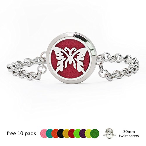 Silver Essential Oil Diffuser Bracelet - YouMiYa Butterfly Style Aromatherapy Essential Oil Diffuser Perfume Locket Bracelet Bracelet Impressive and Beautiful For Gifts
