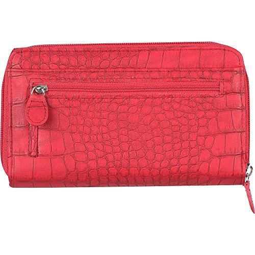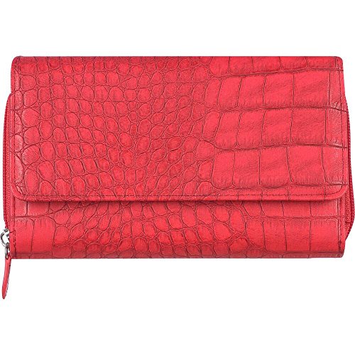 -. Brand : Wilsons Leather -. Color : Red -. Department : womens -. Feature : Front flap with snap closure / Croc-embossed faux-leather exterior / Rear exterior zip change pocket, bill compartment; top zip pocket with two bill compartments, and zip change pocket / 4 picture window slots; ID window; 8 card slots; 2 bill compartments; checkbook cover pocket; calculator / 7.5'W x 4.5'H -. Model : PL51475 -. MPN : PL51475 -. PartNumber : PL51475 -. ProductGroup : Shoes -. ProductTypeName : HANDBAG -. Title : Wilsons Leather Womens Croc-Embossed Faux-Leather Clutch