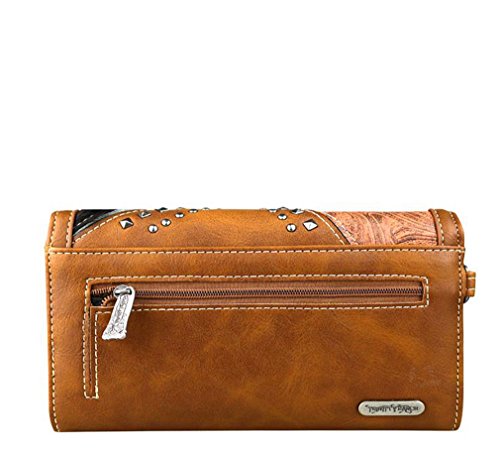 -. Title : New Trinity Ranch Floral Embossed, Hair-on-Hide Organizer Wristlet Wallet- Black