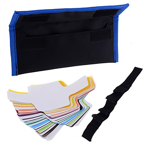 - Feature : 20 pieces Color Gel Filters for lighting effects and color correction / Includes 20 filters: 14 color effects, 5 color correction, 1 diffusion / Tabbed design attaches quickly to any shoe-mount flash / Use the correction gels to balance your flash to ambient light / Note: Flash is not included.