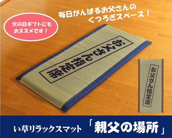 【商品名】 固わた40mm入り い草ごろ寝フリーマット(おやじの場所) 『大和』 ブルー 約70×150cm 【ジャンル・特徴】 吸湿・抗菌・防臭効果で快適なごろ寝マット イ草 いぐさ イグサ  寝っころがってテレビを見たり、折りたたんで腰かけたり、リビングでのお昼寝用に、などいろいろな使い方ができるフリーマットです。い草には1.綿の約3倍の吸湿性があり汗のじめじめを軽減します。2.湿度の調整作用があり、蒸れにくく快適な就寝を促します。3.汗のにおいの元となる化学物質を90%以上抑え、においを軽減します。などの効果があります。中材には固わた40mmを使用していますのでフローリングでも快適にご使用頂けます。い草に青森ヒバ加工を施しています。(抗菌・防臭効果)■商品スペック【サイズ】約70×150cm【素材】側地=い草 ※普通織 中材=固わた40mm ヘリ=綿100%(返し二方)【原産国】日本製(側=中国製 最終加工=日本)【特記事項】画像のカラー・サイズ・セット内容とは異なる場合がございます。商品名のカラー・サイズ・セット内容をご確認下さい。【配送日時指定について】・この商品は、配送希