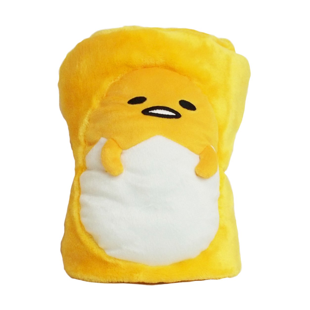 Fluffy blanket with character stuffed animal.