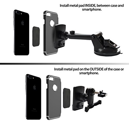 ✔ AIR VENT & WINDSHIELD Complete magnetic car phone holder kit for - with 2 metal plates included for extra security and to use with more devices,1 Outer Plate and 1 Inner plate in the package.