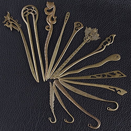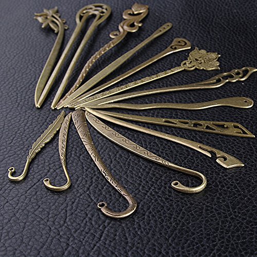 EKLOEN Mixed Designs of Antiqued Bronze Colour Elegant Metal Bookmark [Set of 14]