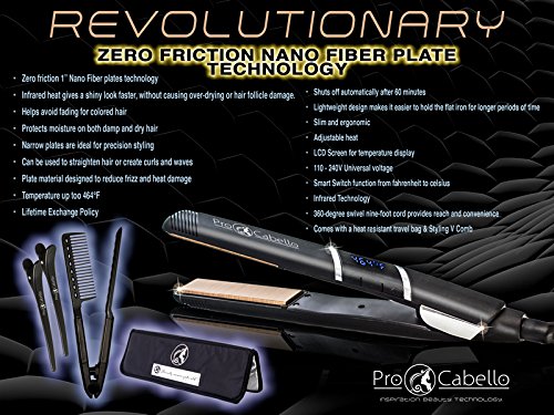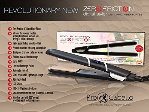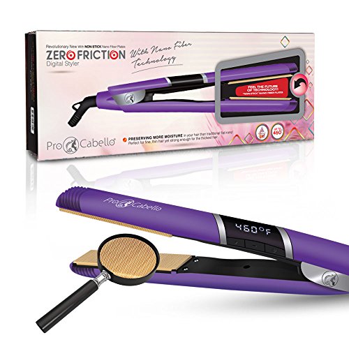 ProCabello Flat Iron - Zero Friction - Digital Styler - Non-Stick Nano Fiber Plates - 1 Inch (Purple)