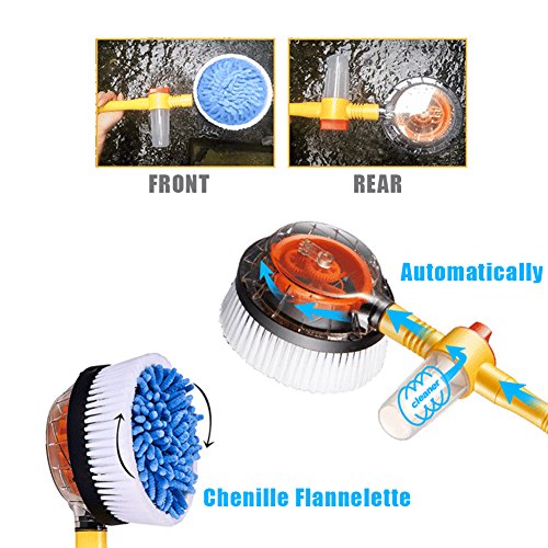 -. Feature : ✔Automatic Rotation Water Outlet No Need Electricity, Save Time And Energy, Water Flows Into The Pipe, High-pressure Driving Force Of Water To Push The Gear And Make It Work Automatically / ✔Rotary Mop-style Design, Soft and Plump Blue Chenille Brush Head Can Clean Thoroughly, Particularly Great Water-absorbing Capacity, Protecting The Paint / ✔Micro Car Washing Machine, Spray Foam With Putting The Detergent Into The Box When You Wash Your Vehicle / ✔High-quality Good Design Self-service Car Wash, Easy To Carry, Safety And Environmental Protection / ✔Three Hydraulic Levels Available, Choose The Suitable Level Base On Your Requirements Of Water Force