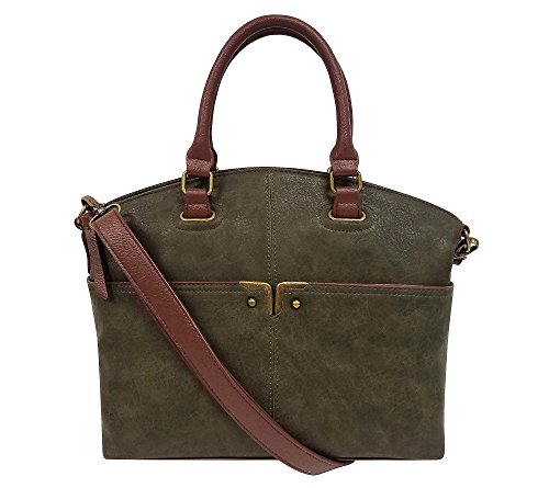 -. Feature : Vinyl / Satchel bag / Top zip closure / Crossbody strap / Double rolled top handles