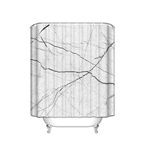 Apartment Decor Shower Curtain by Prime Leader, Wild Symbol Marble Pattern, Fabric Bathroom Decor Set with Hooks, 72 x 96 Inches Extra Long, Black White