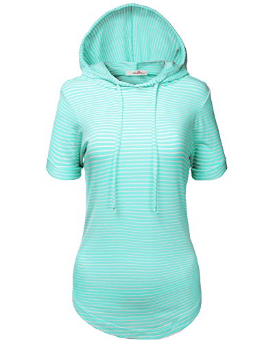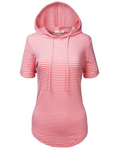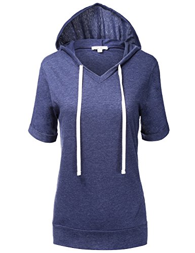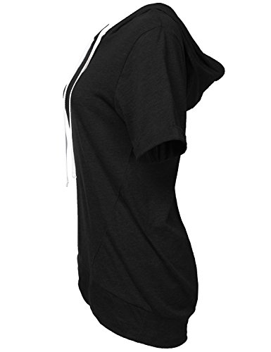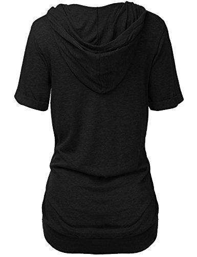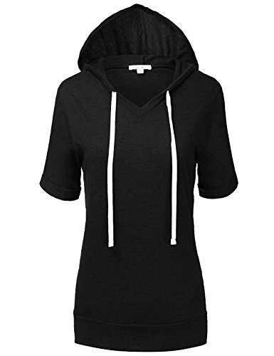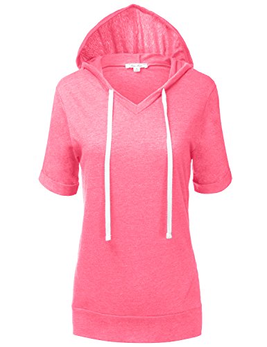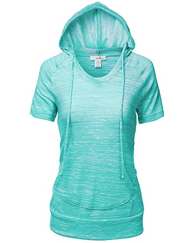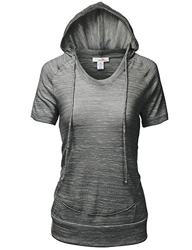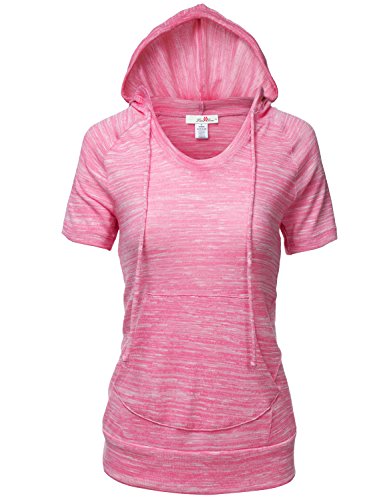 | Luna Flower Women's Kangaroo Pocket Short Sleeve Slub Soft Hoodies |