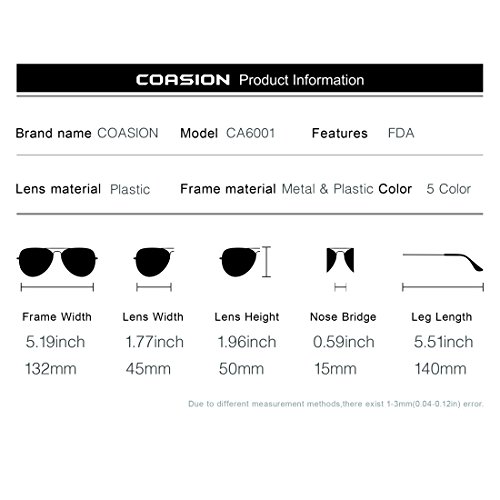 Product Description FEATURES ABOUT CA6001 COASION classic oval full frame clear lens glasses have 5 colors for you to choose. It is great for those don't like a dark lens to still get sun protection. They are fun fashion accessory as well.