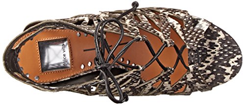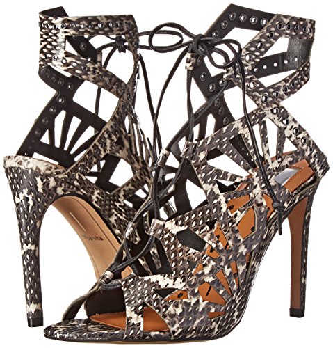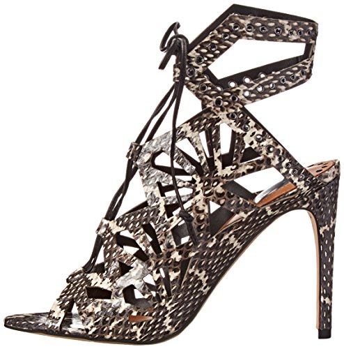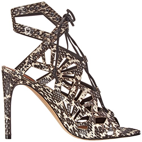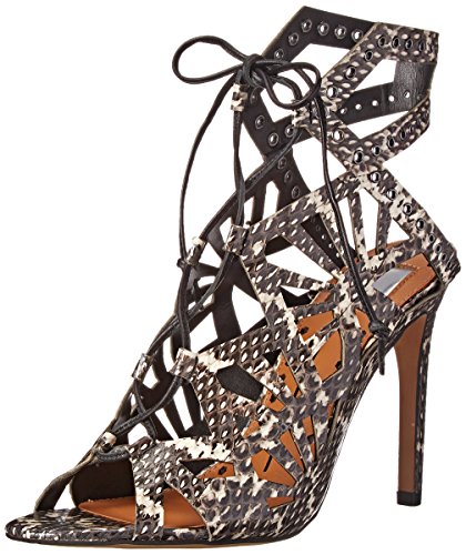 Gladiator-inspired laser-cut sandal featuring lace-up vamp and grommets at ankle straps
