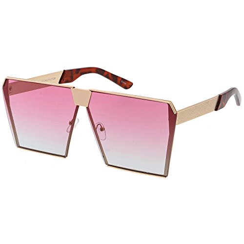zeroUV - Modern Oversize Semi Rimless Gradient Color Flat Lens Square Sunglasses 69mm