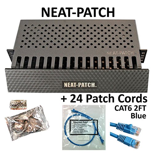 Neat Patch Cable Manager (1 Unit) w/ 24 CAT6 Patch Cables (2FT Blue)