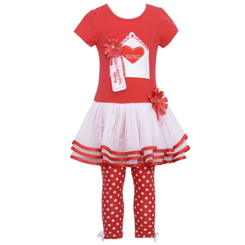 -. Binding : Apparel -. Brand : Bonnie Jean -. Color : Red -. Department : baby-girls -. Feature : Your little girl will look like the Sweetheart she is! This adorable set from Bonnie Jean is perfect for Valentine's Day. Girls 2pc set features short sleeves red knit top, adorable envelope & small heart, multi-layered white mesh skirt w /red satin trims. A fun, cute and comfortable set for your little one to wear! -. ProductGroup : Apparel -. ProductTypeName : PANTS -. Title : Bonnie Jean Girls Valentine Tutu Dress Outfit w/ Leggings Your little girl will look like the Sweetheart she is! This adorable set from Bonnie Jean is perfect for Valentine's Day. Girls 2pc set features short sleeves red knit top, adorable envelope & small heart, multi-layered white mesh skirt w /red satin trims. A fun, cute and comfortable set for your little one to wear!