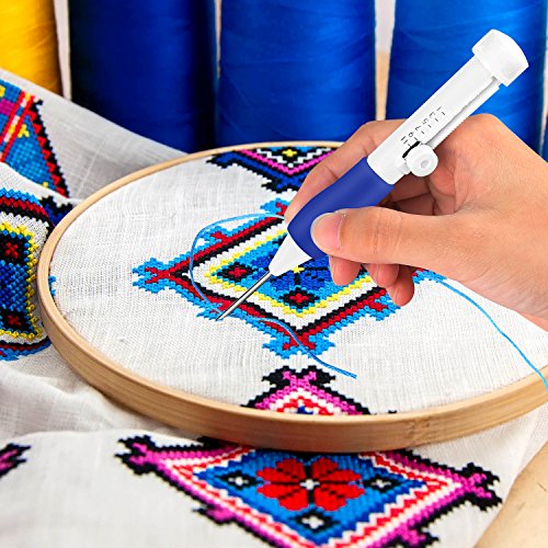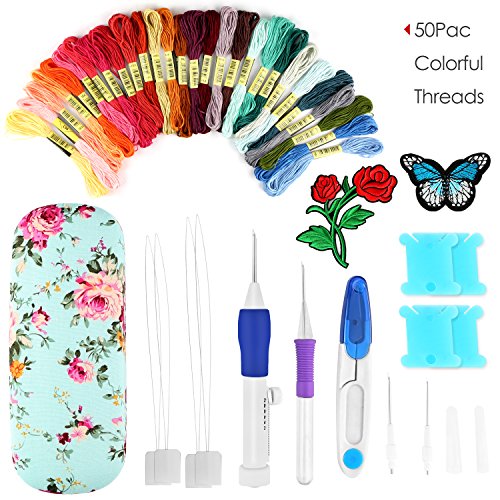 Vanzon Magic Embroidery Pen Punch Needles, Embroidery Pen Set Knitting Sewing Tool With Storage Box 50 Colored Threads For DIY Sewing