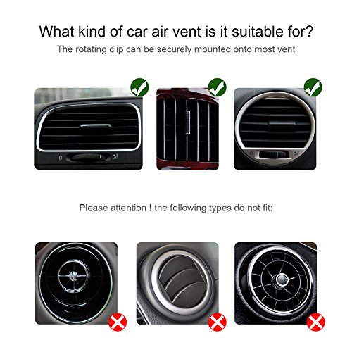 - Sturdy Base: Updated rotary clips ensure firm installation of the holder on most vehicle air vents; protects the holder from falling apart thanks to the sturdy base and padded grips.