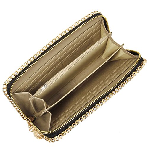 Main compartment features 2 bill pockets, 3 open pockets, 1 zippered pouch, and 8 card slots.
