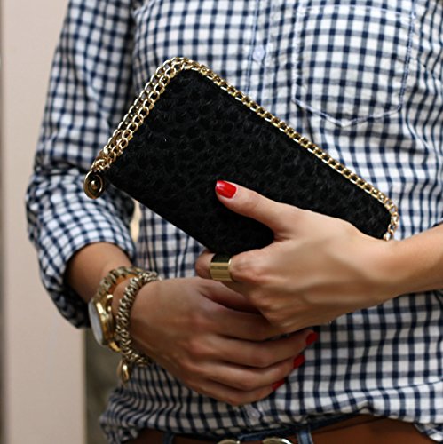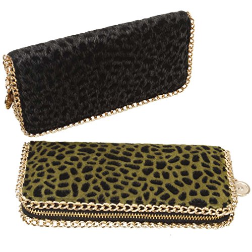 BMC Womens 2 pc Faux Horse Hair Soft Leopard Print Chain Wrapped Wallet Set