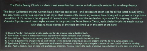 Vincent Longo creates an indispensable solution for on-the-go beauty with the sleekest travel ensemble, the Petite Beauty Clutch. This zippered ultra-suede clutch holds six makeup brushes in place, and is no larger than a mobile phone or other small items a woman may need on her outings. Designed to preserve the pristine condition of this palm-sized essential, the luxuriously soft fabric clutch can be machine washed or dry cleaned for ongoing cleanliness. The Brush Collection contains six brushes to conveniently create any makeup look. From concealing to highlighting, each brush is specifically designed for optimal use and best results. The lineup includes Blush & Powder, Foundation, Liner & Brow, Crème & Eyeshadow, Eyeshadow & Contour and retractable Lip brush. Each is labeled for ease of use, with directions for effortless application. Encased in the protective Petite Beauty Clutch, brushes sit neatly in place with fitted elastic, so all the tools are lined up in the palm of the hand.