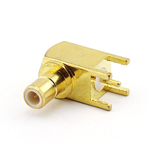 -. Feature : Type: SMB adapter PCB mount plug Right Angle Connector. / Material: Made of high quality pure brass, which has good connectivity. / Function: One side is SMB Male with male pin, and the other side is PCB panel mount plug with 4 pin stand. / Applications: Suitable for Antennas, Broadcast, Radios, Wi-Fi, Telecom, Coaxial cable, LMR, Wireless LAN Devices, CCTV, Microwave Applications and Digital Communication System etc. / Package: 5pcs SMB Male PCB Panel Mount Right Angle Adapters