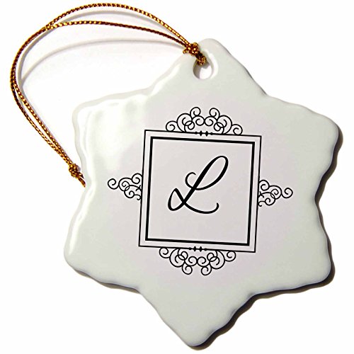 3dRose orn_154335_1 Initial Letter L Personal Monogrammed Fancy Black and White Typography Elegant Stylish Porcelain Snowflake Ornament, 3-Inch