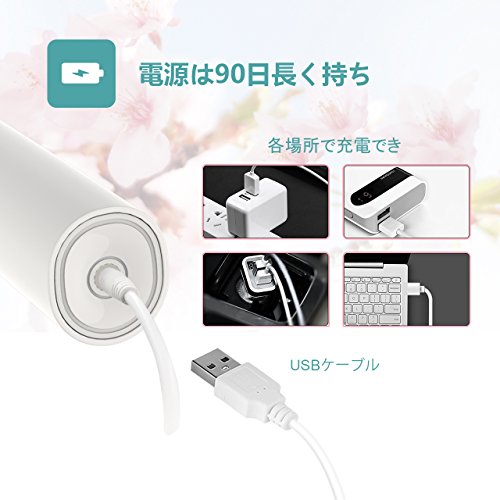 ❤充電スタンド不要でUSBケーブルで挿し込んで充電可能です。電池式歯ブラシに代わて職場に置いて、出張や旅行におすすめます。