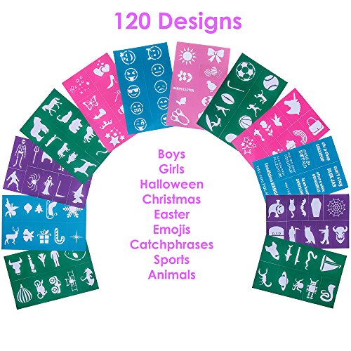 Face Paint Stencils By Bo Buggles | 120 Designs | Adhesive Stencils | Flex To Follow Contours Of The Body & Face For Perfect Application | Reusable Several Times.