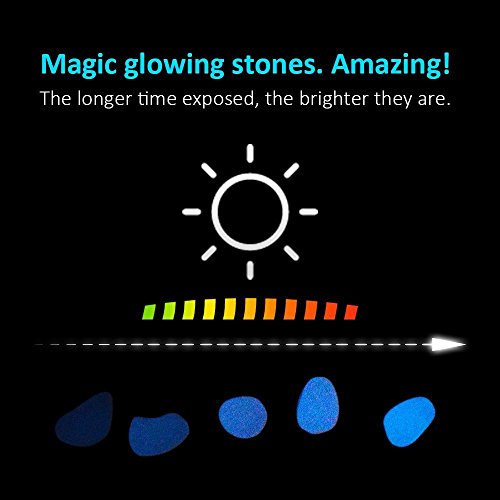 - 【Glow in the Dark】Garden pebbles stones absorb sunlight during the day and light up at night. Very radiant and attractive display.You can send them for your friends or parents as gift, the bright glow is the warmest love that you can send them in the dark. WARNING: Keep away from children for chocking hazard.