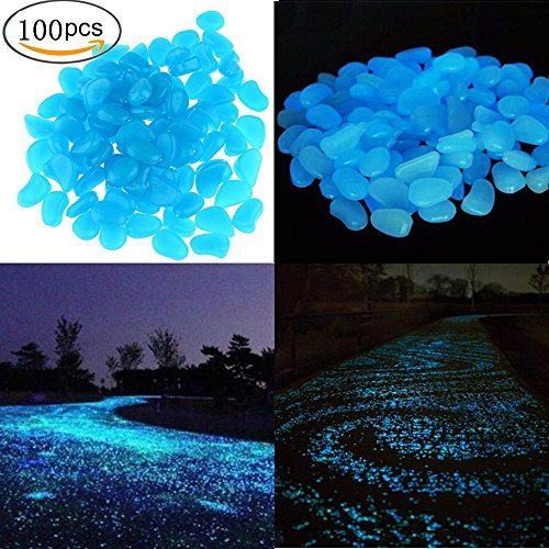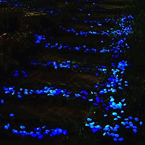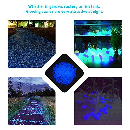 Glow Pebbles,100 Pcs Glow in the Dark Garden Pebbles Stone for Walkways Yard Aquarium Gravel Fish Tank and Garden Driveway,Powered By Light And Solar(Blue)