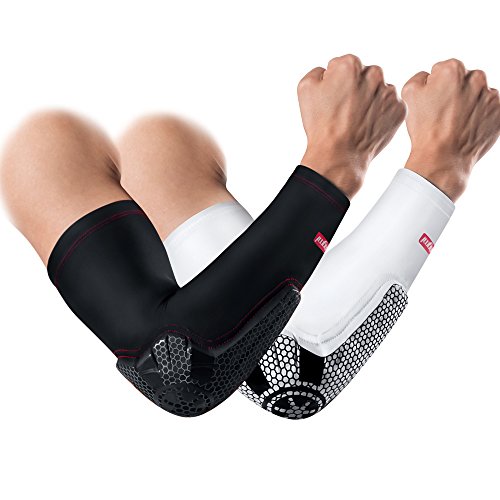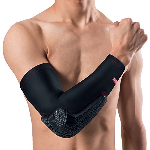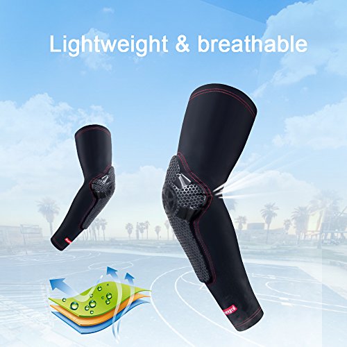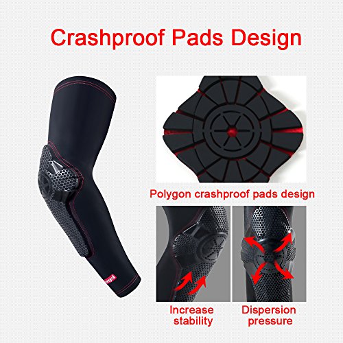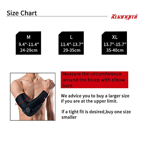 -. Feature : ✅New crashproof technology protective arm & elbow,Compression material maintains muscle and joint warmth and prevents abrasions / ✅Double Non-slip silicone,soft silicone strip hides inside at the top that prevent the arm sleeve from slipping down when moving or getting sweaty / ✅Lycra fabric,Lightweight,comfortable and breathable,accelerating perspiration rate, allowing the body to maintain a suitable temperature / ✅Soft and flexible arm pad hardens on impact and with no hard shell it provide better comfort,performance and compliance / ✅Size:M:9.4"-11.4",L:11.4"-13.7",XL:13.7"-15.7"(Measure the circumference around the bicep with elbow bent)