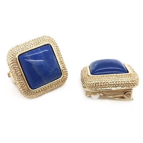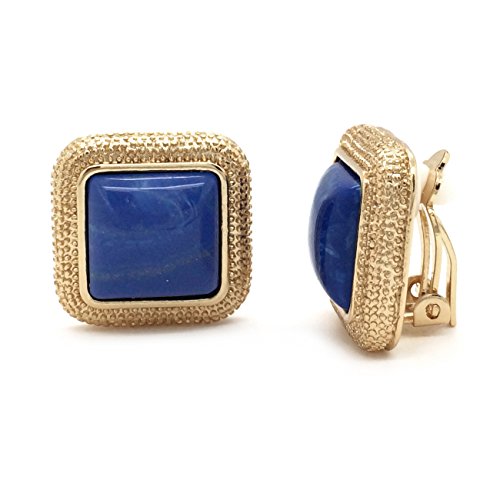 Made of alloy base metal, these classic square shaped earrings are showcasing dark blue resin with beadings detailings. Clip on backings secured these earrings with ease and comfort. For non pierced ears. These fashion clip on earrings will make the perfect choice for your special someone for Valentine's gift, Christmas gift, Mothers day gift, Birthday gift, Anniversary Gift, or Bridal party gifts.Feature