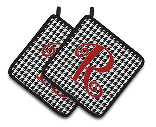 Caroline's Treasures Monogram Initial R Houndstooth black Pair of Pot Holders CJ1035-RPTHD, 7.5HX7.5W, Multicolor