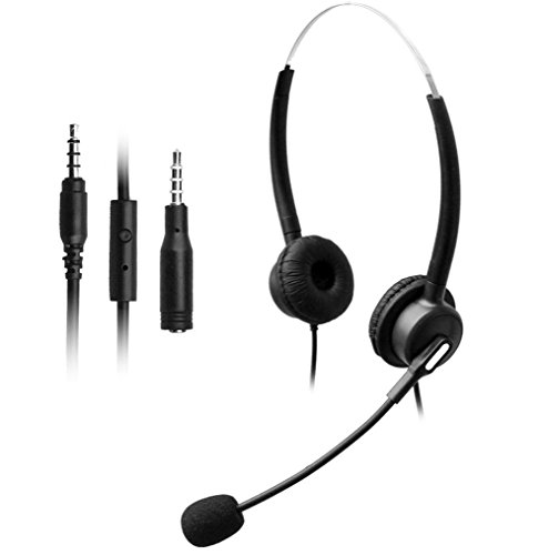 -. Feature : 3.5mm Universal headset adapter included, compatible with most smartphones with 3.5mm headset jack. Plug this headset into your phone and in case it doesn't work properly, pls plug it into the adapter and then into your phone. / Superior Call Center quality sound headset with flexible adjustable noise canceling microphone. / Super Lightweight, Super Durable Headset with Comfortable ear and mic cushions for all day use. / Adjustable headband with flexible microphone, a simple hands free solution for your mobile phone communication needs, which enable you to talk on your cell phone and keep both your hands free. / NO Mic Mute / Volume Control built in. With In Line MF(multi functional) button.
