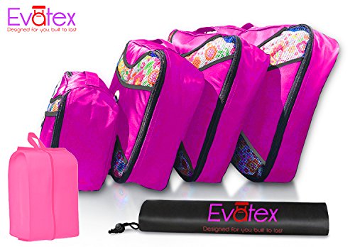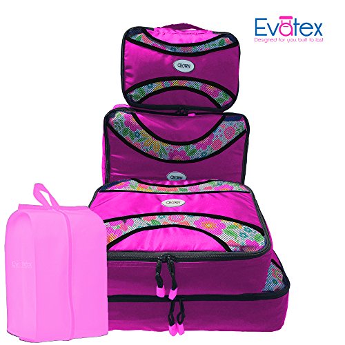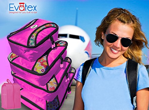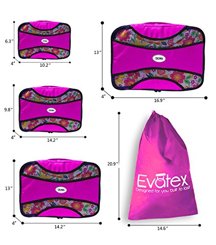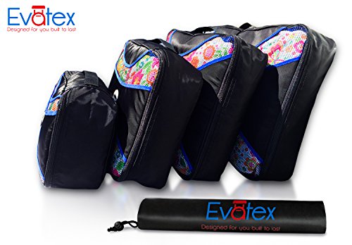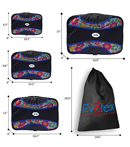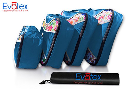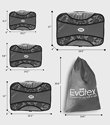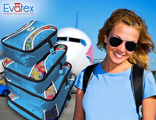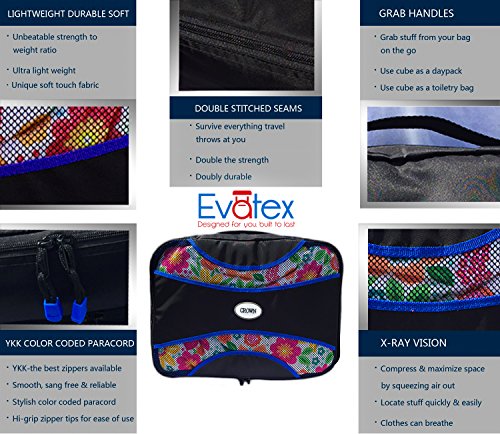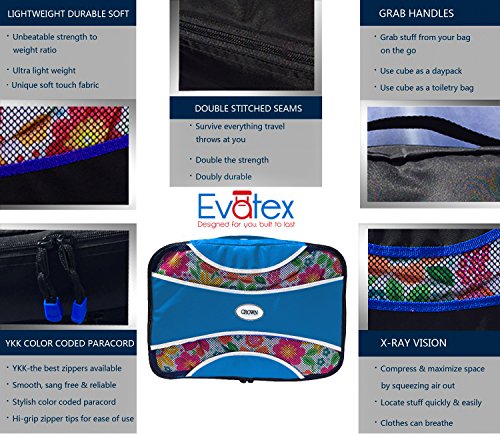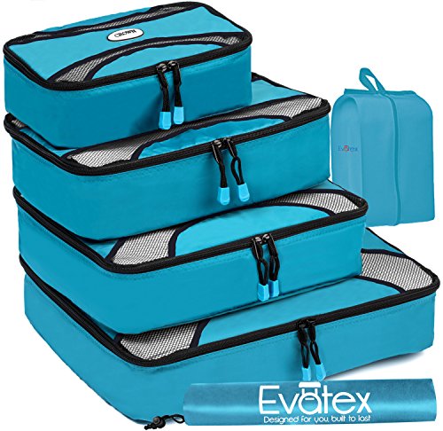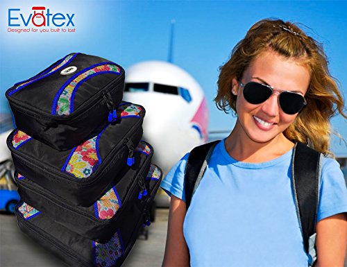 Product Description QUALITY, VERSATILITY AND DURABLE ZIPPERS HIGHEST QUALITY: Evatex Crown Brand is a new Tough Waterproof Nylon fabric, Strong top Mesh- durable enough to secure your items in place and flexible enough for accommodation. Strong and flexible packing cubes designed to fit into your traveling luggage. LIGHT AND DURABLE: Evatex Crown Packing Cubes is, without a doubt, ONE OF THE BEST Packing Cubes! You can always count on us for high-quality products. MULTI-PURPOSE USE: Designed to be used in many ways. Examples: cosmetics bag, luggage packing organizers, travel bags, diaper bag, school packing bags, family travel bags, toiletry bags, backpacks, school works storage for pupils and students, gym bags and much more. 0