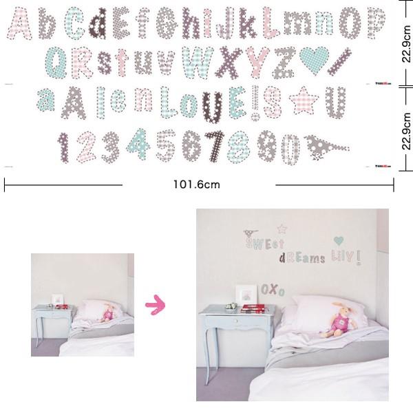 ガーリーなテイストがカワイイ。パステルカラーにドット柄やチェック柄のアルファベットと数字、ハートや星のセットです。同じテイストのステッカーとの同時使いもおすすめです。 ★商品名★ロマンティックアルファベット★商品番号★W20710★シートサイズ★[101.6cm×22.9cm]×2枚★内容★52ピース/1パック