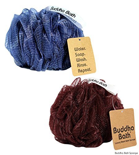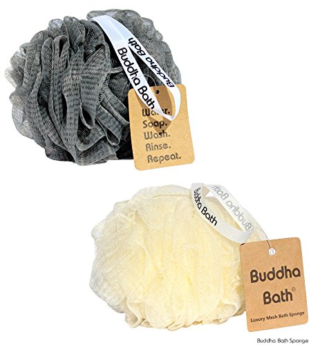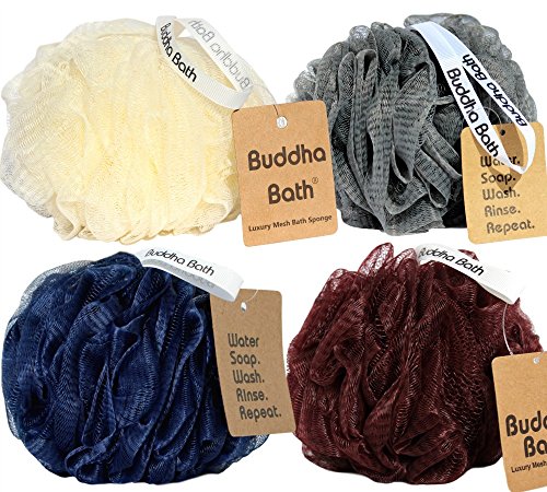 Buddha Bath Luxury Eco-Friendly Clean Mesh Bath Sponges 4 Pack Individually wrapped- Loofah - Lufa -luffa - Shower Pouf Ball - Sophisticato Color Pack