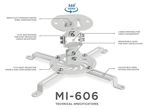UNIVERSAL FIT – Mount-It! ceiling projector mount fits virtually all the projectors on the market. Four adjustable arms can be rotated individually and extended or retracted to suit various projector mounting patterns. Distance between mounting holes on back of projector must be 11.5” or less.