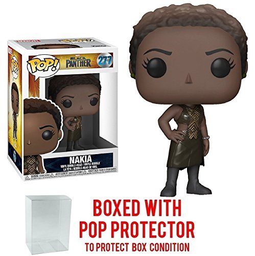 -. Binding : Toy -. Brand : Funko -. EAN : 0706098918073 -. Feature : Bundled Plastic Box Protector with the collector in mind (Removable Film) / From Black Panther, Nakia, as a stylized pop vinyl from Funko! / Stylized collectable stands 3 ¾ inches tall, perfect for any Black Panther fan! / Ships in acid-free PET plastic Pop Protector with peel-able protective film / Push-lock tab that adds structural integrity to the Pop Protector when formed -. Genre : Action -. Label : Funko -. Manufacturer : Funko -. MPN : Nakia277 -. PackageQuantity : 1 -. PartNumber : Nakia277 -. ProductGroup : Toy -. ProductTypeName : TOYS_AND_GAMES -. Publisher : Funko -. Size : 3.75 inches -. Studio : Funko -. Title : Funko Pop! Marvel: Black Panther - Nakia #277 Vinyl Figure (Bundled with Pop BOX PROTECTOR CASE) -. UPC : 706098918073